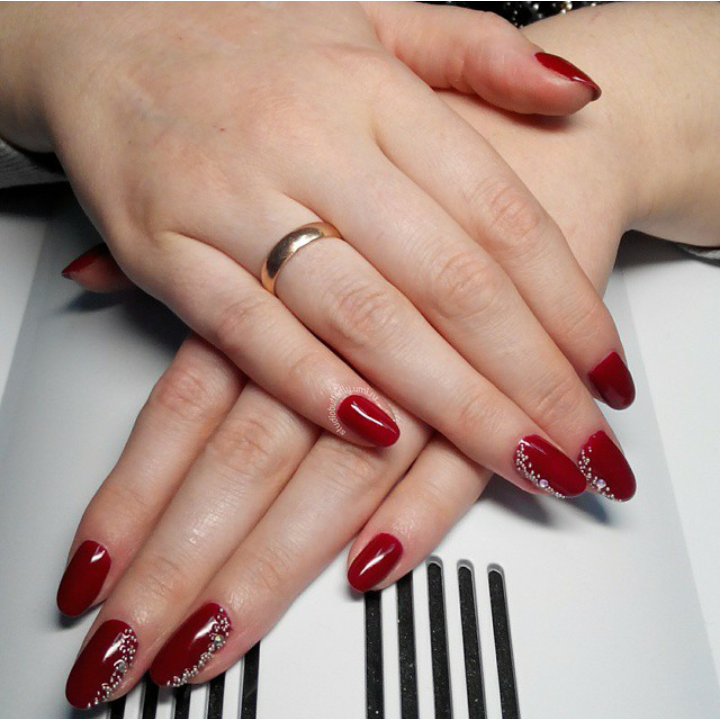 Покрытие гель-лак дизайн бульонки, стразы